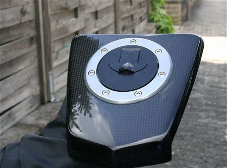 Echt Carbon Tankdeckelabdeckung mit integriertem Tankschloss.
