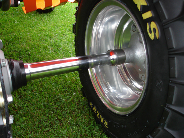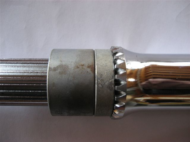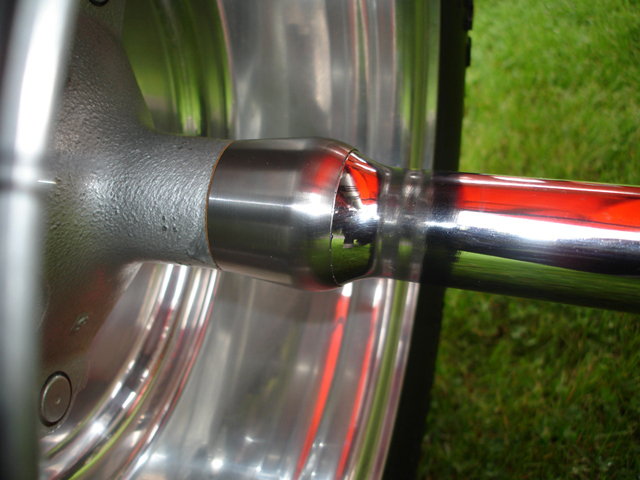 Leider werden diese wunderschönen Achsen ab Werk mit einer eher minderwertigen Distanzhülse (siehe Bild 1) ausgeliefert. Wir haben uns daher die Mühe gemacht und eine optisch ansprechende Hülse aus VA hergestellt. Mit dieser Hülse sieht die Dural Blue Achse aus, wie "aus einem Guss".