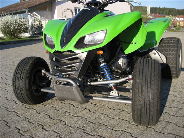 Die KFX 700 lässt sich so auch bei höherer Geschwindigkeit sogar mit Breitreifen und bei Spurrillen ohne Adrenalinsteigerung sicher fahren.