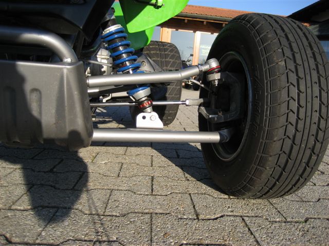 5 cm verlängert. Es ergeben sich 8 verschieden Aufnahmepunkte (0-53 mm) für den Stoßdämpfer, da die A-Arms über eine verschraubte Stoßdämpferaufnahme verfügen.