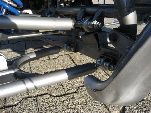 Normalerweise ist bei der KFX 700, ohne eine Änderung der A-Arms eine Tieferlegung nicht möglich, das heisst, nicht fahrbar, da sich die intelligente KFX-Aufhängung beim Kurvenfahren auf Negativsturz